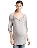 Everly Grey Women's Maternity Henley Luna Tunic Top, Heather Grey, Small