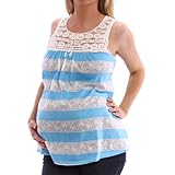 Kiki's Maternity: Blue Lace Striped Maternity Tank Top W/Crochet