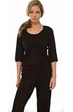 Soft, comfortable and stylish our 2 pc PJ set is made of viscose and spandex. Easy pullover has V-neckline with pretty smocking and shirring. Easy pull down for nursing. 3/4 length sleeve on top and long pant to match. Available in Black and Charcoal Heather. Sizes S-M-L-XL-2X. Read more